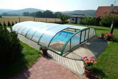 Nejlevnější varianta obloukového zastřešení bázénu. Konzultace zdarma a sezónní nabídky. Výroba zastřešení bazénů pro klasické. Všechno zařídíme – bazén zaměříme, vyrobíme, dovezeme a zprovozníme. Nabídneme vám zastřešení bazénu , díky kterému se budete koupat až měsíců v . Nabízíme zastřešení bazénů.